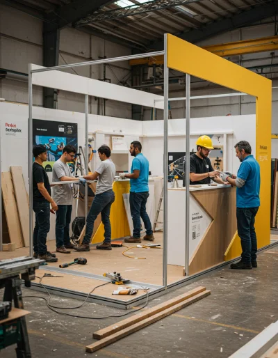 Our team of skilled craftsmen meticulously builds high-quality exhibition booths and event structures.